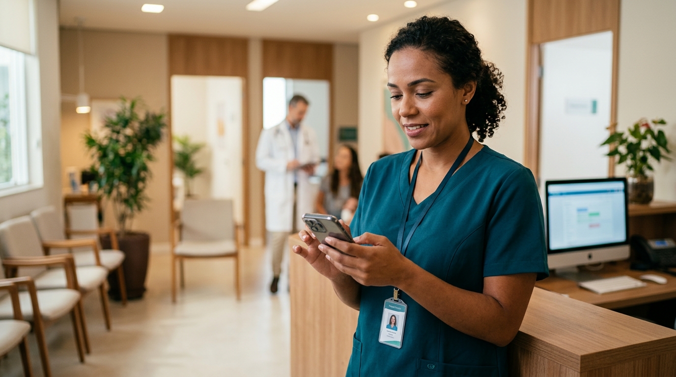Profissionais de saúde não ficam sentados na mesa o dia inteiro. Médicos checam a agenda entre consultas no corredor. Recepcionistas respondem pacientes pelo celular. Gestoras aprovam convites de equipe enquanto esperam em reuniões. O Simplafy Saúde precisava acompanhar essa realidade — e agora acompanha. O lançamento de março traz experiência mobile responsiva completa: chat, onboarding, perfil, suporte e, pela primeira vez, configuração de WhatsApp diretamente no celular.