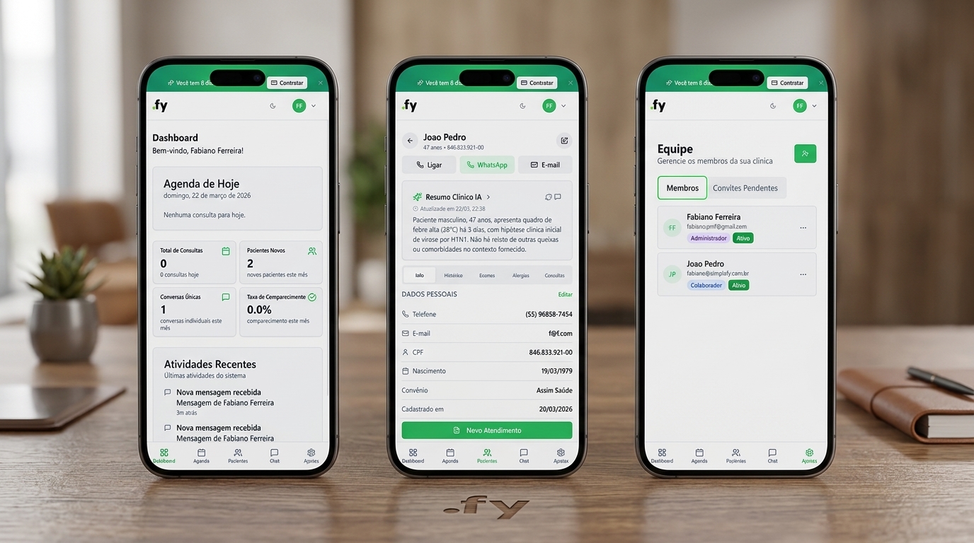 Quer ver como funciona na sua clínica? Teste grátis por 10 dias em simplafy.com.br/saude — sem cartão de crédito.